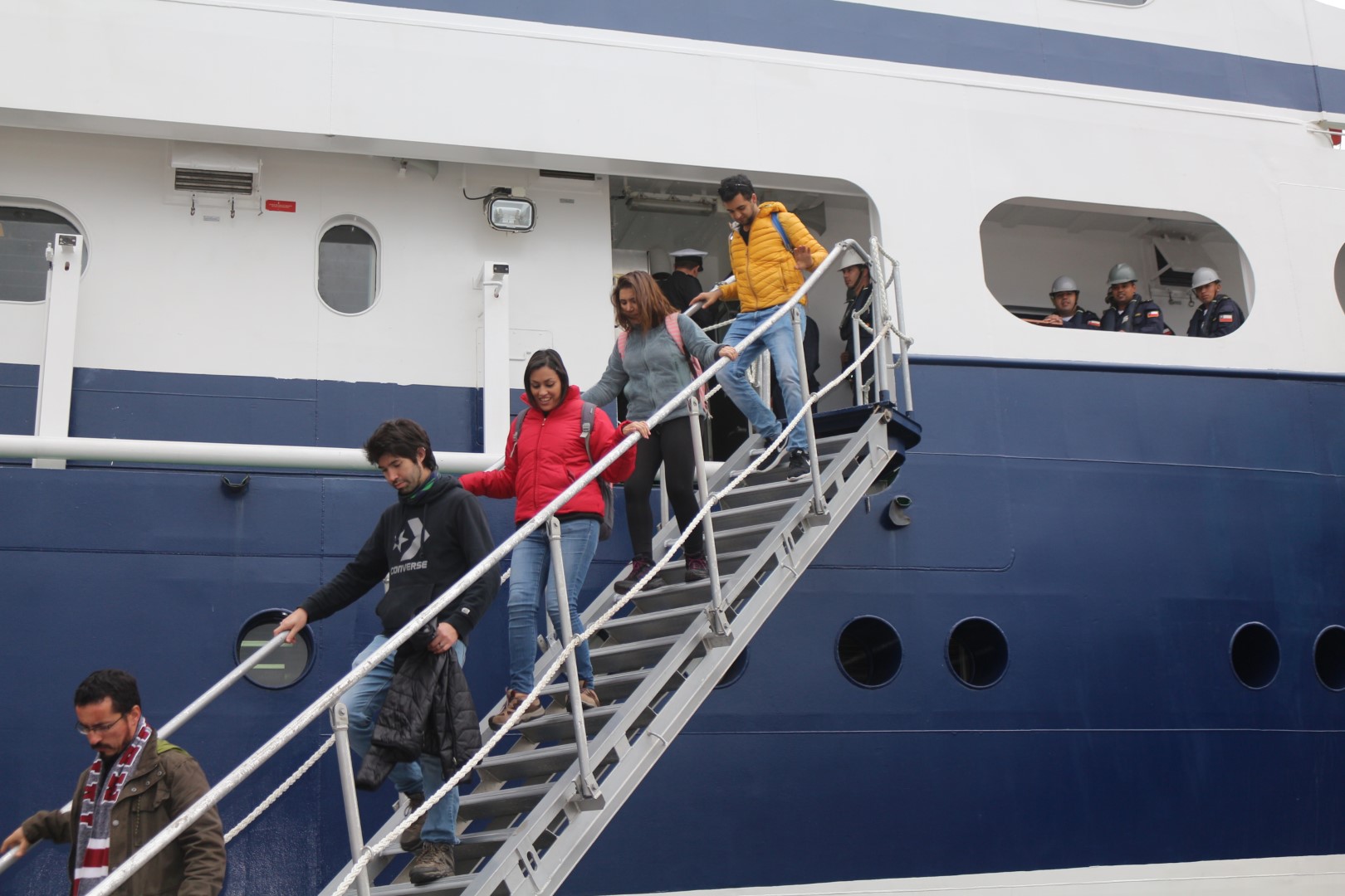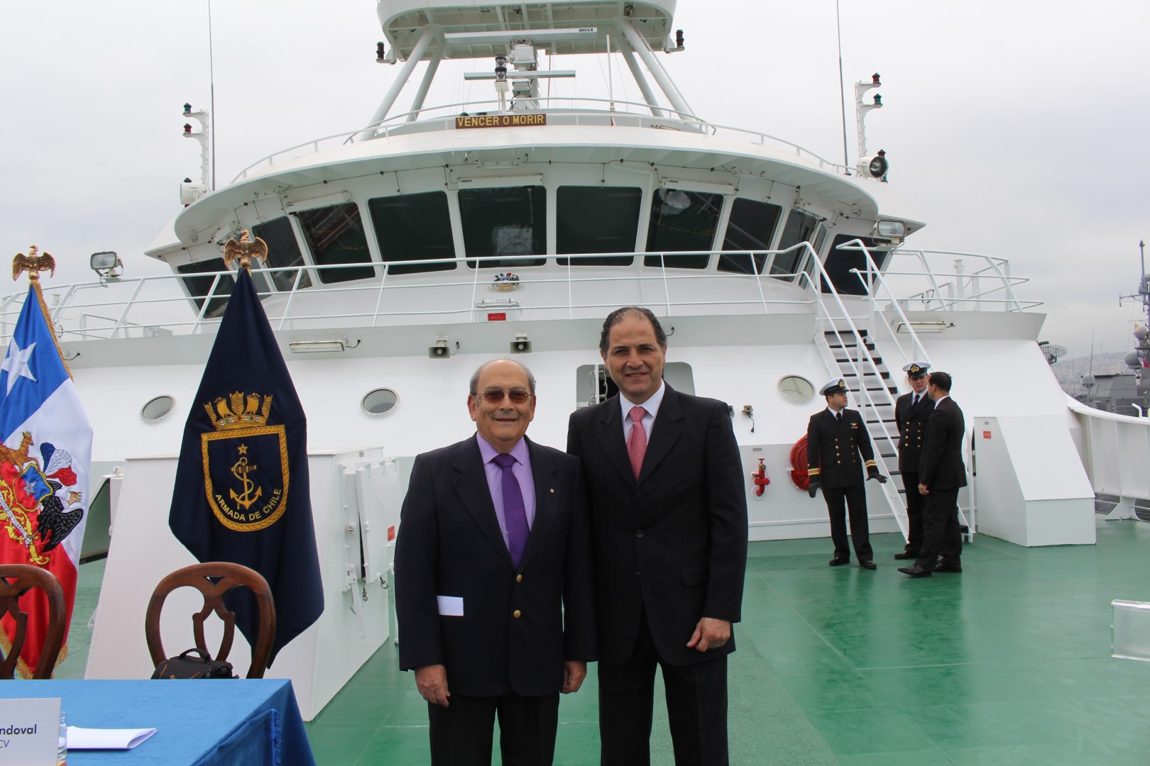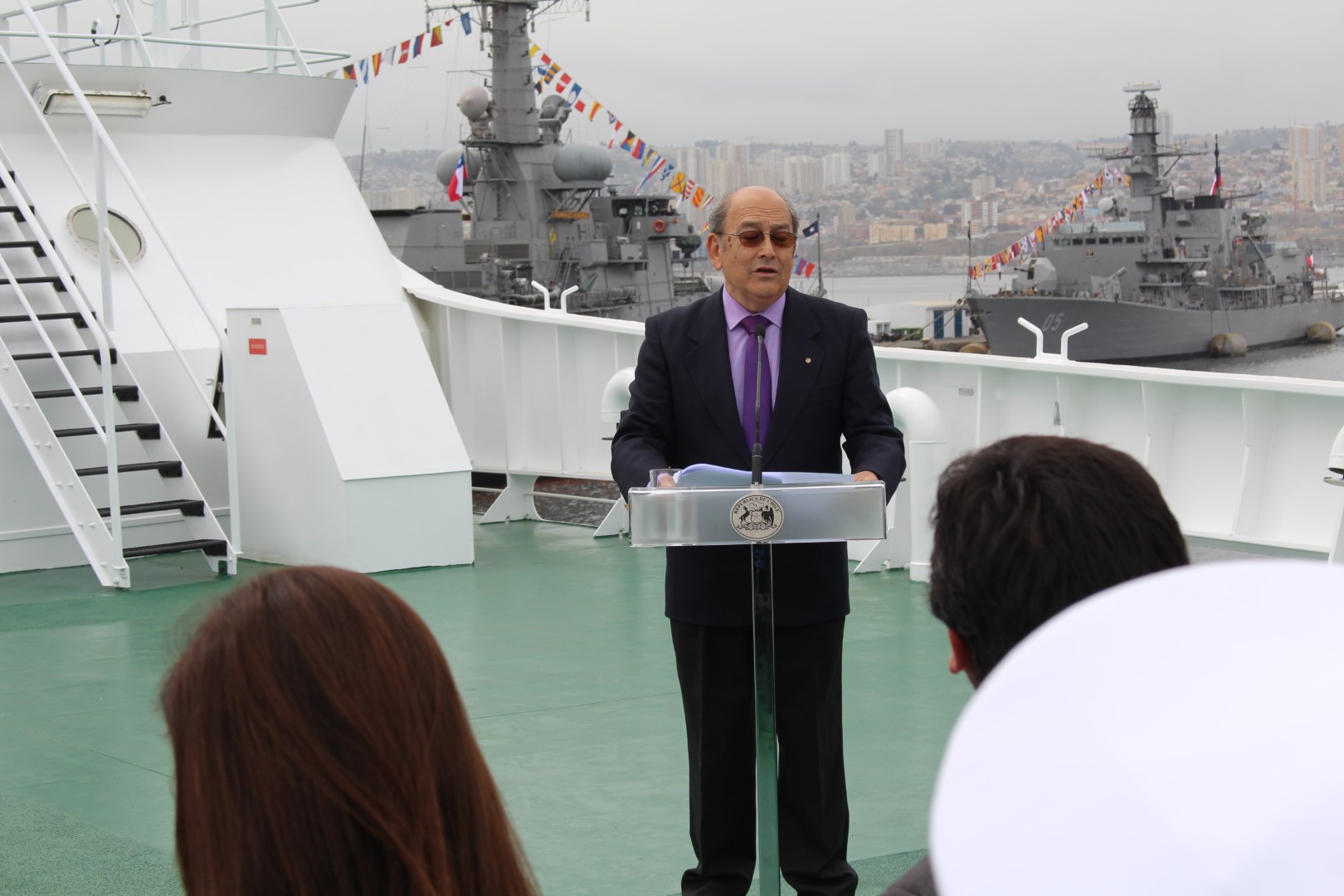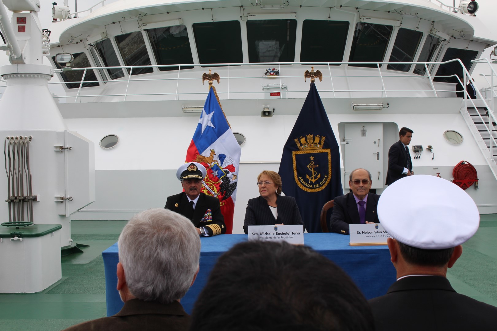 Ceremonia de zarpe inaugural del “Cabo de Hornos” después de reparaciones post-terremoto e inicio del crucero Cimar 22. Asiste la Presidenta Michelle Bachelet y el Comandante en Jefe de la Armada. Los profesores Nelson Silva y Mario Cáceres, profesores del Magister, asistentes a la ceremonia, también participaron en la primera parte del crucero cimar 22.